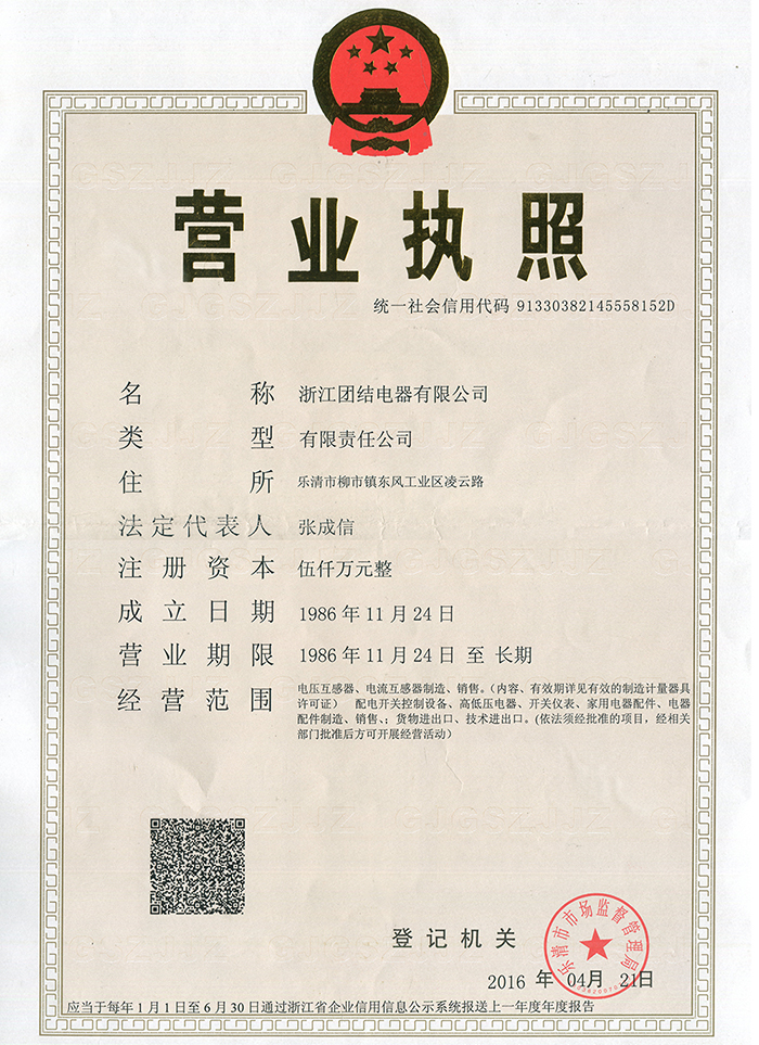 浙江團結電器有限公司坐落于東海之濱,甌江北畔,雁蕩山南麓的柳市東風工業區,緊臨104國道線,甬臺溫高鐵和高速公路。